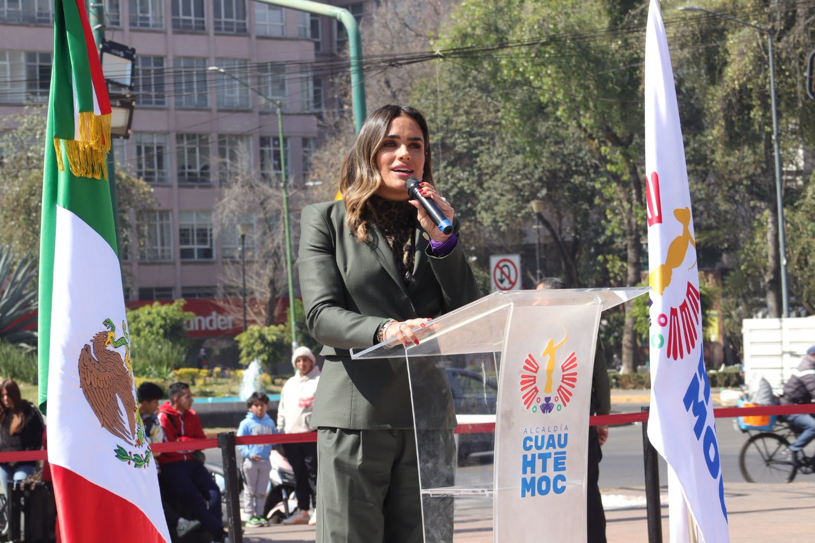 En el marco de la ceremonia cívica por el Día de la Bandera, la alcaldesa Alessandra Rojo de la Vega llamó a mirar el lábaro patrio desde el presente y no desde la comodidad del protocolo; al pronunciar un mensaje en la explanada de la alcaldía, la mandataria reflexionó en torno a la violencia, la unidad y la responsabilidad colectiva.