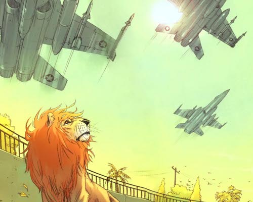 Pride of Bagdad (Orgullo de Bagdad / Los leones de Bagdad. 2006) es una novela gráfica escrita por Brian K. Vaughan guionista de cómic estadounidense que nos ha entregado grandes historias como Y: El último hombre (DC comics/ Vertigo), Ex Machina (DC comics), Runaways (Marvel) en su mayoría aclamadas por la crítica y ganadoras de premios internacionales entre ellos el premio Eisner (siempre lo digo, es como el "Óscar" de los comics) y magistralmente ilustrada por Niko Henrichon (Fables, New X-Men, Sandman, Spider-Man entre otras.).