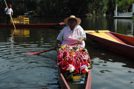 “Desde los seis años acompañé a mi madre a vender flores” comenta la señora que también en su nombre lleva una enorme dosis de poesía, Amada del Monte quien a bordo de su chalupa se acerca a los visitantes para ofrecer un ramito de flores. “Para su novia, joven” es su frase para incitar a la venta.