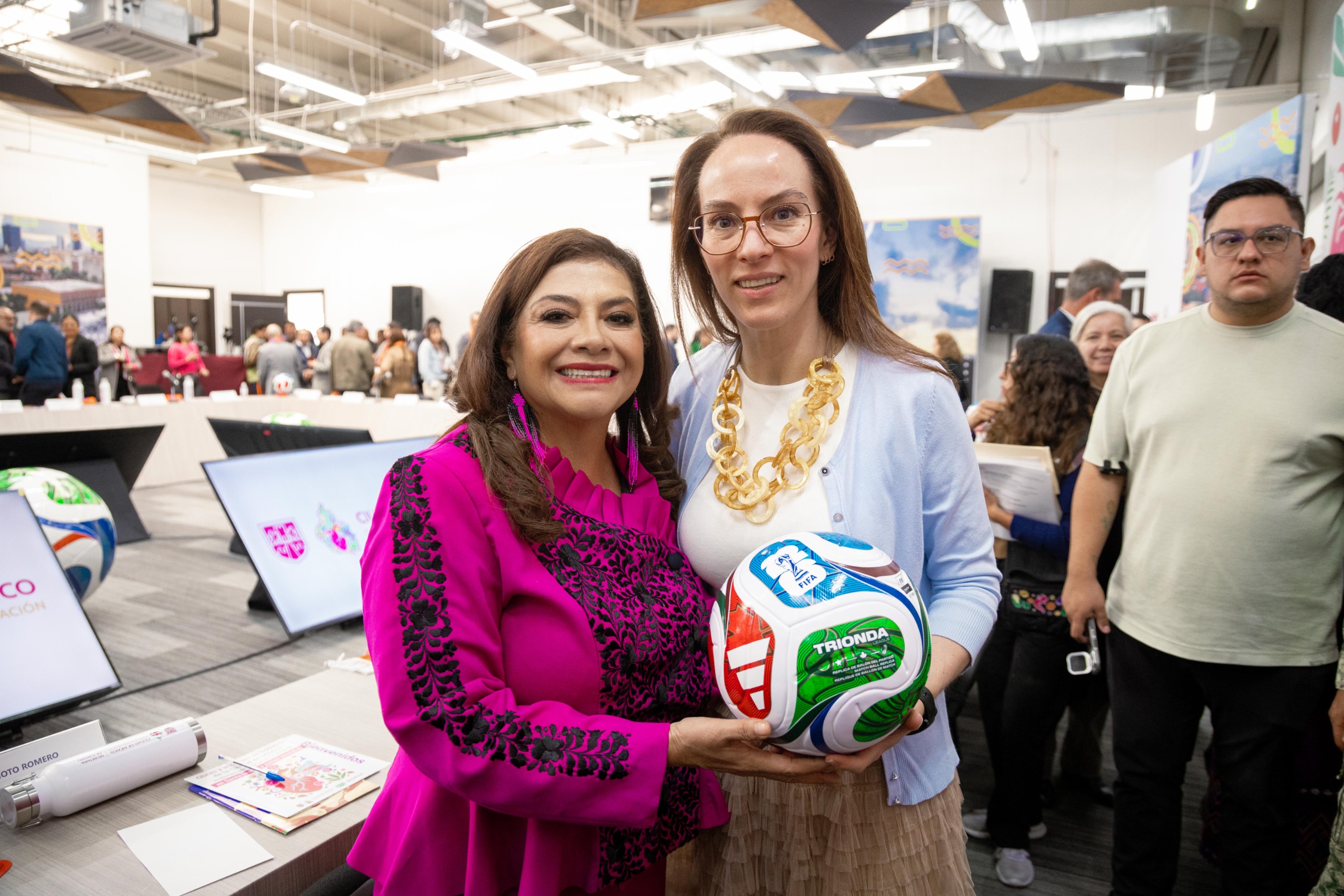 La Jefa de Gobierno destacó que la ciudad ha sido cuatro veces sede inaugural de mundiales, al incluir la edición femenil del 71 –donde México quedó como subcampeona–, por lo que propuso a las y los presentes hablar de “cuatro sedes inaugurales de México”.