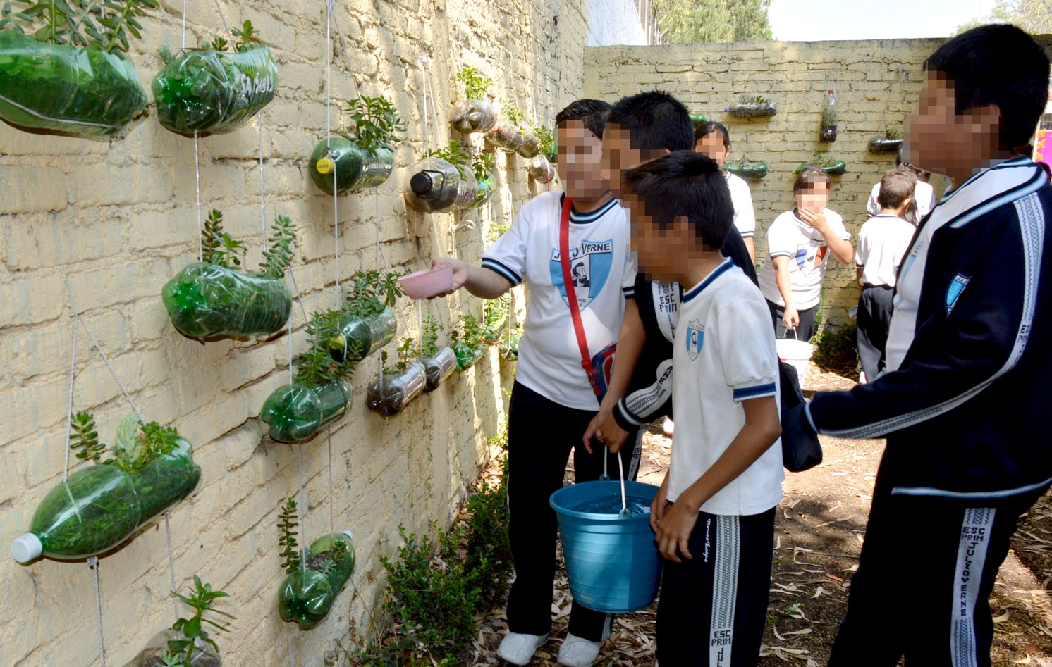 En la primaria Maestro José Vasconcelos, en la colonia Tlatilco, los padres de familia solicitaron al Centro Verde asesoría para desarrollar un jardín vertical en uno de sus muros, por lo que se capacitó a más de 50 alumnos sobre cómo sembrar pequeñas plantas en envases de PET, para luego colocarlos sobre la barda.