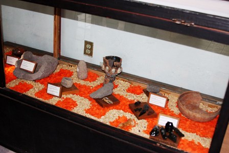 En las vitrinas se exhiben piezas que los vecinos de Azcapotzalco han donado, además de las encontradas en las excavaciones y construcción de la estación Refinería del Metro, como vasijas, máscaras y fragmentos de navajas prehispánicas.