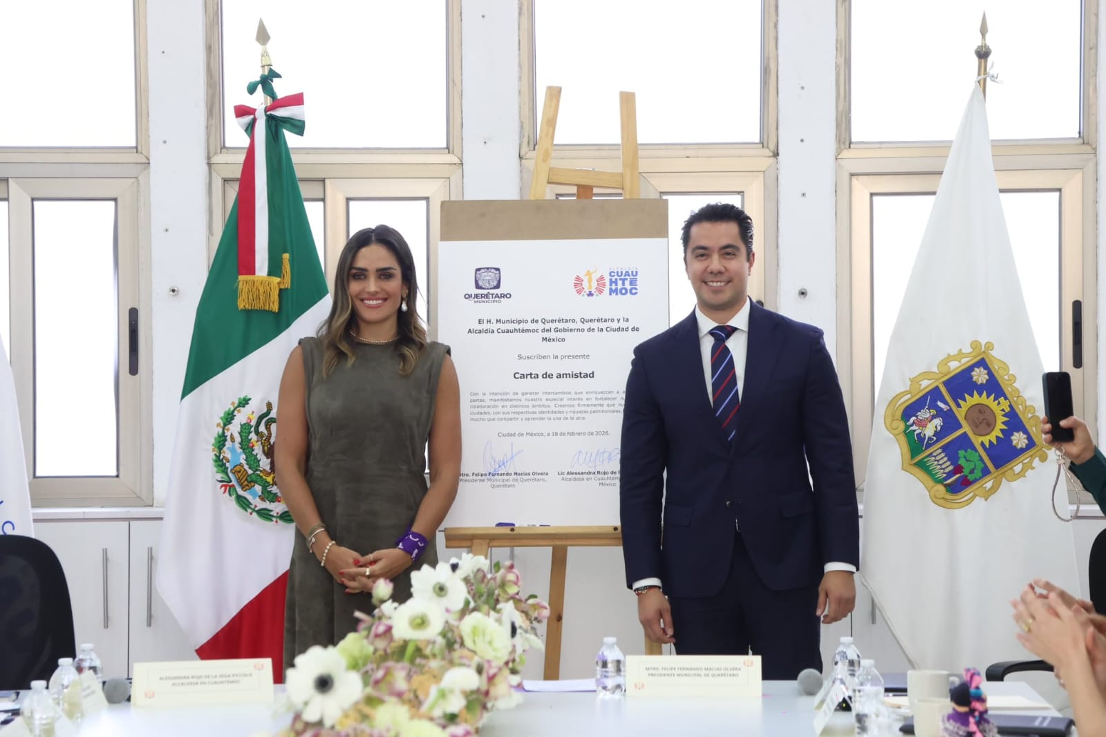 La alcaldesa Alessandra Rojo de la Vega recibió en la Alcaldía Cuauhtémoc al presidente municipal de Querétaro, FeliFer Macías, para la firma de una Carta de Amistad que establece una ruta de colaboración institucional entre ambos gobiernos.