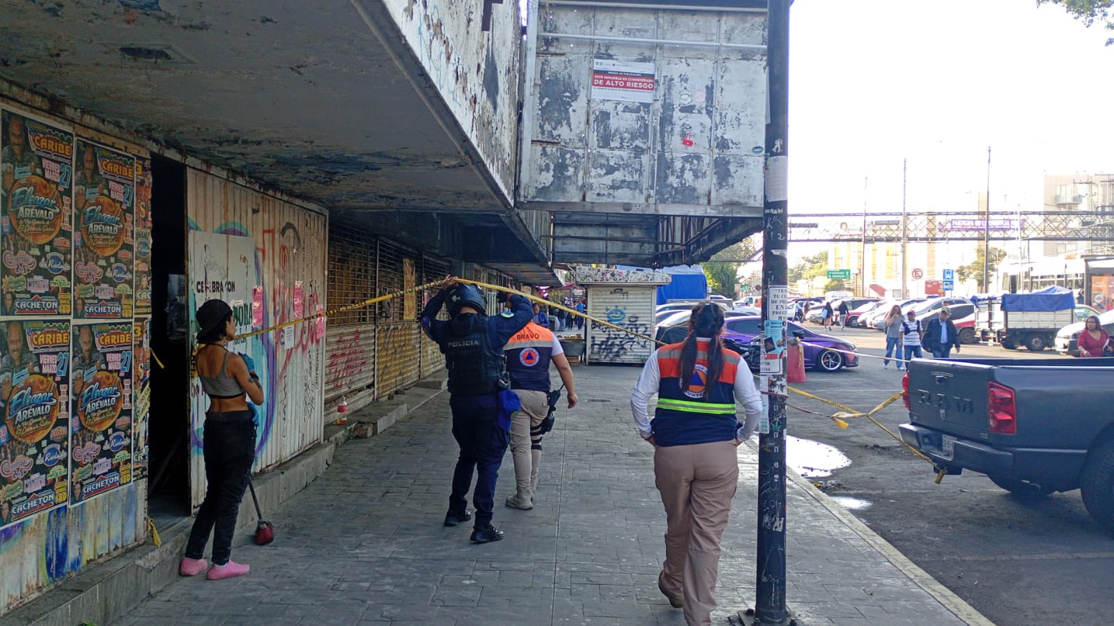 INICIA RETIRO DE MARQUESINA EN ANTIGUO CINE TLATELOLCO TRAS REPORTES VECINALES