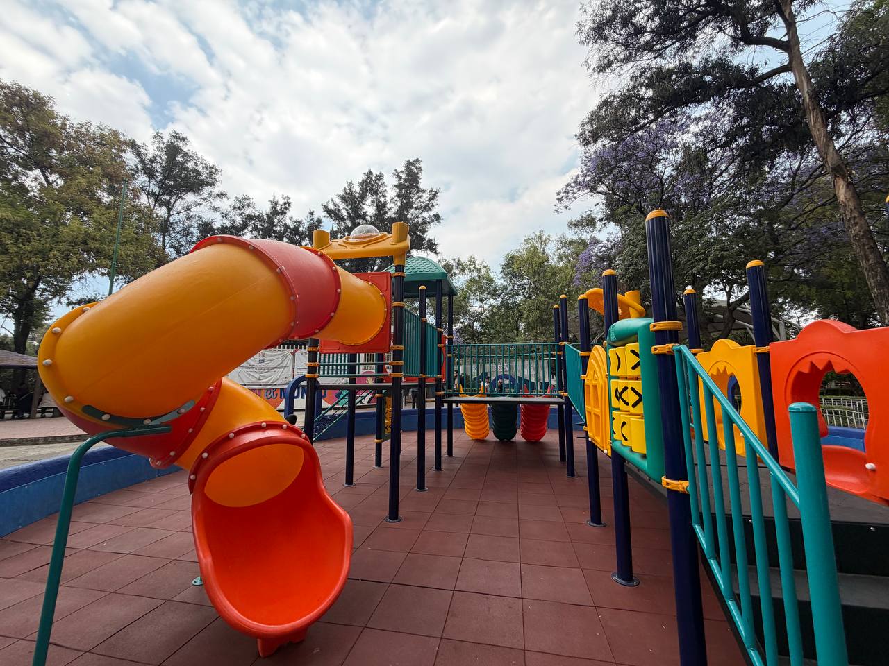 En el parque se retiraron y sustituyeron juegos infantiles, se colocó piso amortiguante, protección en muros del área de juegos, se aplicó pintura general y se instalaron cuatro reflectores para mejorar la iluminación del espacio.