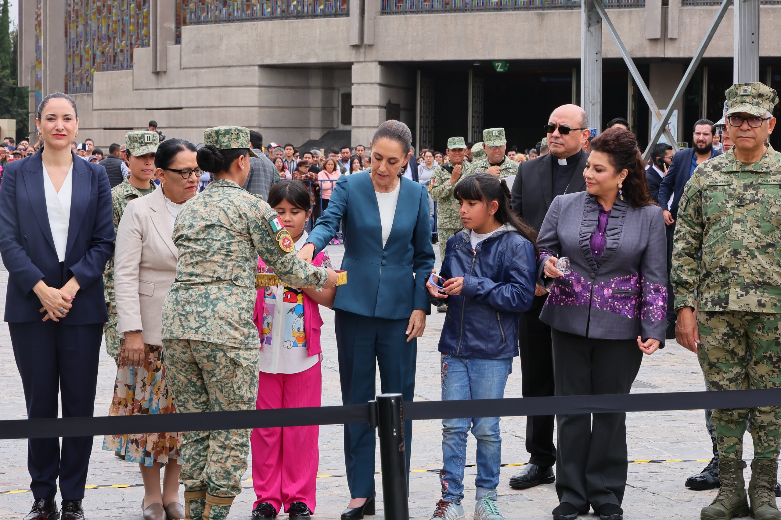 A este evento acudieron las secretarias de Gobernación, Rosa Icela Rodríguez, y de Cultura, Claudia Curiel Icaza, además de los secretarios de la Defensa Nacional, Ricardo Trevilla Trejo, y de Marina, Raymundo Pedro Morales Ángeles, además de autoridades de la Guardia Nacional, de la Rectoría de la Basílica de Guadalupe, y de la alcaldía Gustavo A. Madero. |